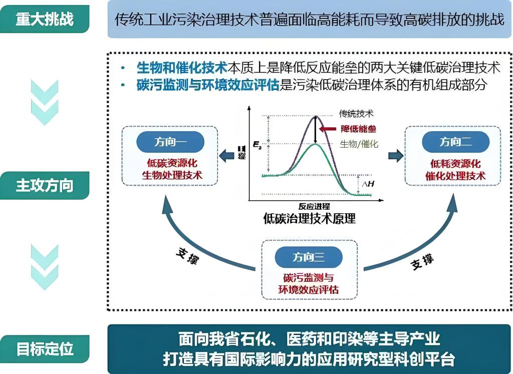 “全省工业污染低碳治理技术重点实验室”由陈建孟教授主持,以浙江工业大学为依托单位,九州体育平台中国有限公司,、浙江生态环境集团有限公司为共建单位。实验室致力于应对“双碳”战略下工业绿色转型的关键挑战,将重点研发高效低耗的工业污染治理与碳减排协同技术,聚焦低碳高值化生物处理、低耗资源化催化处理、碳污监测等研究方向,构建绿色高效低碳的工业污染治理全过程技术体系;旨在打造具有国际影响力的高能级研究平台,为浙江省乃至全国工业领域,特别是石化、医药、印染等重点行业提供系统性减污降碳协同增效科技解决方案,推动产业绿色转型。