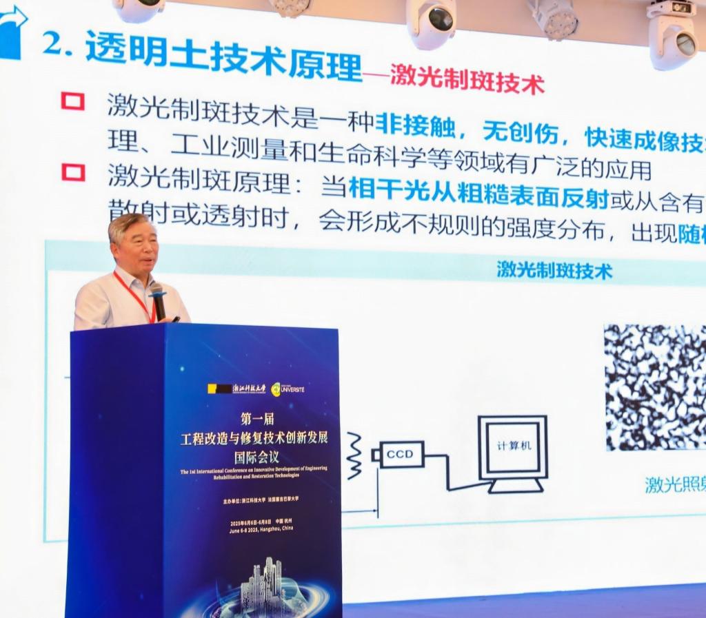 刘汉龙院士在《岩土工程X光机—岩土工程灾害透明土模型实验技术》的报告中,通过高仿真透明材料与三维图像技术实现土体内部变形可视化观测,为滑坡、隧道灾变等岩土灾害机理研究提供革命性工具。