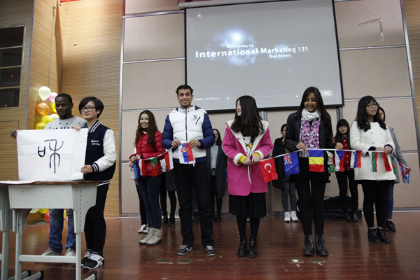 28个同学,10个国家,7种语言,1份情怀,市场营销(国际)131班中外同学一起上台,浓浓的国际范扑面而来。生化/轻工学院轻工132班以造纸术开场,现场展示各色不同的纸;艺术学院服工131现场做立体剪裁展示,还带来一场T台秀;建工学院土木工程133班把巨型木棍建模模型带上台……鲜明的专业特色跃然而出,他们以专业自豪,潜心钻研。