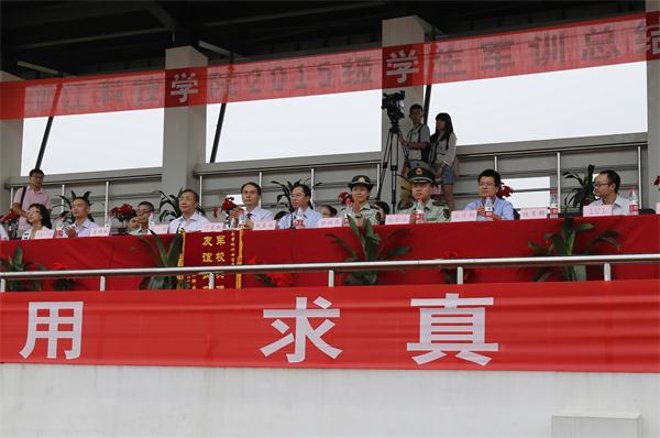 9月19日上午, 2015级学生军训汇报表演暨总结表彰大会举行,四千新生汇报展示了军训成果。校长叶高翔、校党委副书记赵东福、副校长万健和承担本次军训任务的武警杭州士官学校负责人出席大会。学校相关职能部门、各学院总支负责人参加大会。