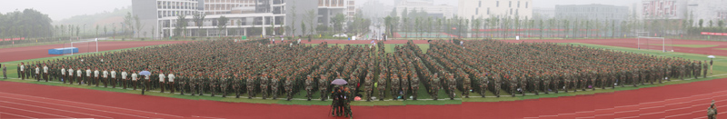 根据上级要求,结合我校实际,本次军训为期10天,2014级学生(专升本学生除外)编为1个军训团,下设8个营,58个连。教学内容包括队列、国旗护卫、内务卫生、礼节礼貌和擒拿等军事技能训练,国防、军事思想、军事高技术、信息化战争等军事理论学习,大学生安全教育等3部分。在本次军训中,学校继续探索大学生军训教导队模式,组织学校国旗班和我校从部队退役复学的大学生担任教官参与军训工作。