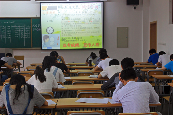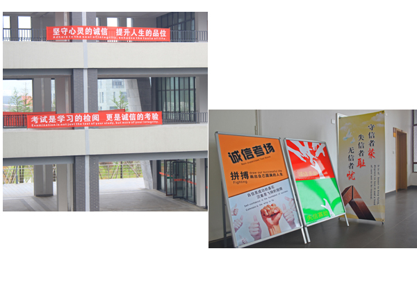 两校区考场外宣传横幅、展板,考场内的温馨提示,都在提醒学生诚信应考,端正考风。考场秩序井然,师生精神饱满。考生们凝神聚力、认真答题;监考老师认真履行职责,为考生提供优质的考试服务;教务处等相关职部门和各二级学院也对考场轮流巡查。