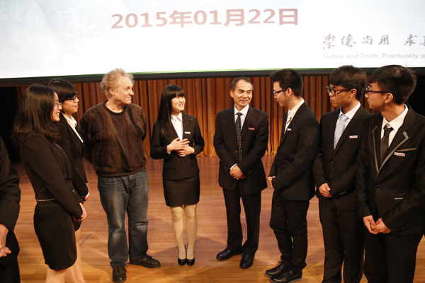 图1:校长叶高翔与中外师生交流诚信