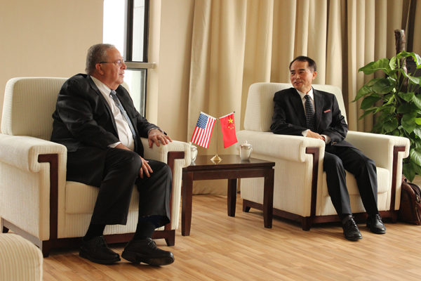 10月10日,美国布里奇波特大学校长尼尔•萨洛宁一行来校访问。校长叶高翔在安吉新校区接待了尼尔一行。双方进行会谈,表示将努力开展好两校共同举办的经济学专业本科层次中外合作办学项目。经管学院、国际处负责人及相关项目负责人参加会谈。