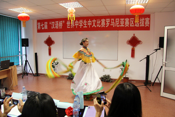 学好中国话,朋友遍天下。6月1日第七届“汉语桥”世界中学生中文比赛罗马尼亚赛区选拔赛在克鲁日孔子学院举办。(图三)该项赛事自2008年起由中国国家汉办发起,本届比赛以“我与孔子学院”为主题,共有来自罗马尼亚克鲁日孔子学院、锡比乌孔子学院、布拉索夫孔子学院、布加勒斯特孔子学院,布加勒斯特拉泽尔中学以及胡内多阿拉、德瓦等地教学点的21位选手参加。经过主题演讲、中国知识问答和中华才艺展示三个环节的精彩比赛,来自锡比乌孔子学院的选手夺冠,克鲁日孔院有两名选手获二等奖。中国驻罗马尼亚大使馆教育组主任卞正东,巴比什-波雅依大学副校长马尔查•鲍勃先生,各孔子学院的院长及孔子学院相关合作院校负责人出席本届比赛。