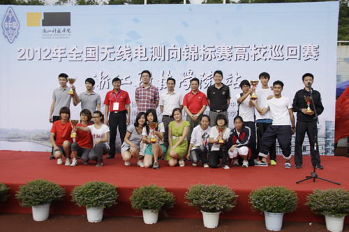 此外, 5月12日在浙江大学举行的第二站比赛中,我校工业工程112汪瑶和土木082赵亚敏分获女子个人计时赛第二名(一等奖)和第三名(一等奖),轻化工程112朱陆婷获二等奖,测控112谢红桃和生物工程111黄瑜烨获三等奖。机制106马国栋获男子个人计时赛二等奖,计算机101吴浩翔和应用物理111李文博获三等奖。我校运动员在三站比赛中共获9项一等奖,5项二等奖,10项三等奖,出色地完成了2012年全国无线电测向锦标赛高校巡回赛的比赛任务,为我校的户外运动特色项目建设提供了重要的支撑。