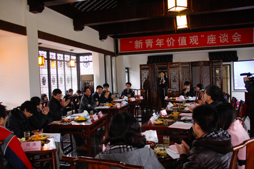 王建华代表全校师生欢迎“新青年”代表的到来。他说党的十七届六中全会突出强调了社会主义核心价值体系的重要性,近年来,我校不断加强大学文化建设,突出文化育人功能。“新青年价值观”的讨论非常有意义,让当代青年思考自己在社会主义核心价值体系中建设承担的角色,更加勇敢地挑起历史赋予当代青年的社会重任。