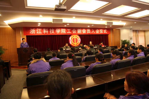 12月27日,校工会举行新会员入会仪式。校党委副书记周加敏、省教育工会副主席陈勇出席仪式并讲话。后勤公司、保卫处、图书馆、体育部、机械学院、艺术学院、机关分工会等相关单位负责人及100余名新会员代表参加会议。