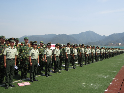 9月6日下午,2011级学生军训动员大会在学校田径场隆重举行。校党委副书记陈根芳、副校长赵东福出席动员大会。武警杭州士官学校副校长王作才和我校相关职能部门负责人、二级学院党总支负责人以及2011级新生参加了大会。