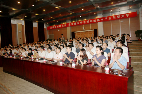 7月1日,学校隆重举行纪念建党90周年暨先进表彰大会。校党政领导班子成员及正院级巡视员出席会议。全体中层干部、受表彰集体代表和先进个人、各党总支总支(直支)委员、离退休老同志代表和党员代表200余人参加会议。校党委书记徐志平在会上讲话。会议由校党委副书记周加敏主持。