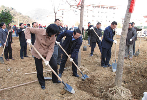 周国富等连续种下了银杏、桂花、香樟、红豆杉、浙樟、黄山栾树等近50株树木。周国富指出,植树造林对防风固沙、美化环境、应对气候变化具有十分重要的意义。各单位和公民个人都要积极开展种树植绿活动,既为子孙后代留下一笔宝贵财富,又为推进生态文明建设,为实现我省科学发展、和谐发展、转型发展贡献力量。他说,十年树木百年树人,教育系统尤其要把植树与育人紧密结合起来,树立培养学生改善环境的意识和共建生态文明的责任感。
