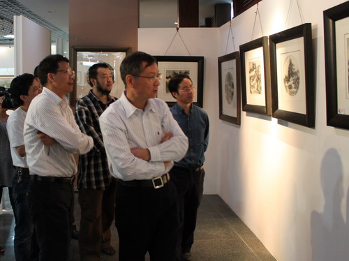 开幕式后,校领导和师生一同参观了作品展。作品件件精彩、博人眼球,工笔、水墨、西方油画等风格迥异的画作彰显了作品的艺术个性和水平,也充分体现本次作品展创新的主旨,师生作品互动,教学相长。