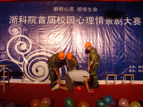 最终,机械学院、艺术学院和建工学院分别赢得本次心理情景剧大赛的冠、亚、季军,机械学院的谢浩、姜剑以及生化学院的胡蓉3位同学则荣获优秀演员奖。