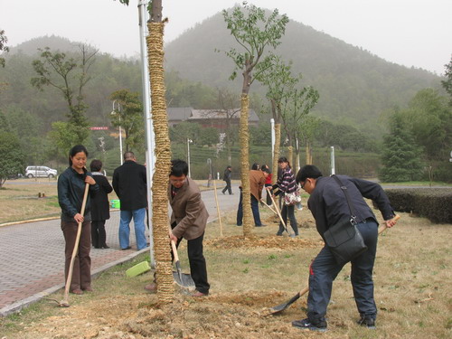 为向母校30周年校庆献礼,临安校友分会向学校捐赠了10余棵香樟树。3月20日上午,临安校友分会部分校友重返母校,在丹桂路“校友林”处种下了这批香樟,为校园又增添了一抹亮丽的风景。校纪委书记鲁凤会见了前来参加植树的校友,并参加了植树活动。