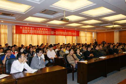 郭孔辉从我国汽车可持续发展问题、汽车技术的发展与壁垒、汽车开发技术的发展与挑战、知识产权意识的成长等4个方面阐述了我国汽车业的发展状况。他指出,自主品牌的汽车在我国已有一定发展,但一些关键的核心技术,特别是动力传动系统的电控技术与AT等复杂零部件技术仍受外国公司知识产权的控制。必须加强新技术的基础和创新研究,依靠基础研究打破无形的软件技术封锁;依靠结构和材料创新打破国外有形的专利壁垒。郭孔辉强调,新能源汽车及其零部件是我国汽车业发展的难得机遇。目前,我国汽车企业力量仍然弱小,必须依靠国家工程推动,加强基础与共性技术研究。