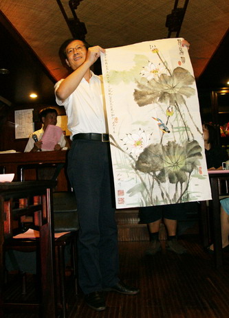 与会人员依次献上了对祖国和学校的祝福。民革成员、艺术学院洪文尧教授和九三学社成员、建工学院陶松垒教授级高工还向学校送上了自己创作的书画作品。