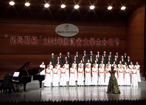 2009年浙江省首届大学生合唱节是首届浙江文化艺术节的重要项目,由省教育厅、省文化厅、省财政厅、绍兴市人民政府主办。合唱节以“十月的阳光”为主题,旨在歌颂祖国,迎接新中国成立60周年。比赛充分反映了当代大学生热爱祖国、乐观开朗、积极向上的精神风貌。同时也对大学生进行了爱国主义教育,展现了大学生热爱祖国、朝气蓬勃、昂扬向上的精神风貌。初赛期间,全省共有65所高校75支队伍4000多名大学生参加,角逐出31支队伍最终进入决赛。我校合唱团在宋雪萍老师的指导下,准备了《在灿烂阳光下》和《瑶山夜歌》两首曲目参赛,最终获得了二等奖的好成绩。