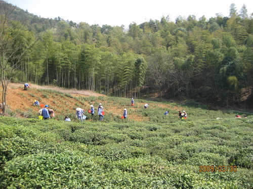 随着春茶采摘期的到来,后勤公司筹备了和山香茗采摘工作。为保证采制质量,公司特意聘请了校外专家对采摘人员进行为期三天的技能培训,要求采摘出的香茗严格符合“两叶一芯”的标准,并聘请专业炒茶师炒制新茶,使茶片外观整齐、手感光华、色泽鲜美、口感醇香。