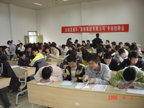 当天的招聘会上,富通公司人力资源部负责人介绍了企业现状、发展前景、用工制度和人才培养制度等。90多位毕业生表示出强烈的应聘意愿。当天下午,公司有关人员对毕业生进行了面试,负责人对我校参加面试毕业生的总体评价良好。据悉,本周公司将基本确定面试入围学生,下周可与毕业生签订就业协议书。