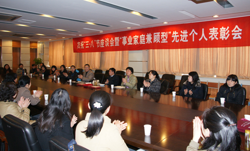 3月6日下午,学校召开庆祝“三•八”节座谈会暨“事业家庭兼顾型”先进个人表彰会。校党委副书记胡浙平出席会议。受表彰的2007-2008年度“事业家庭兼顾型”先进个人,女教工代表,校女职委委员、各分工会主席和校工会人员参加会议。