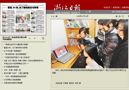 12月18日,纪念党的十一届三中全会召开30周年大会在北京隆重举行。在收听收看了大会直播后,我校师生通过各种方式学习会议精神。