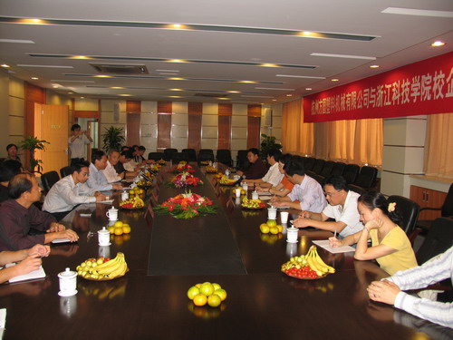 吕进介绍了我校的办学方针、办学理念和办学模式,并对学校今年推进的校企合作工程作了阐述。他表示,希望学校和杭州方圆塑料机械有限公司的进一步合作,能开创校企双赢新局面。