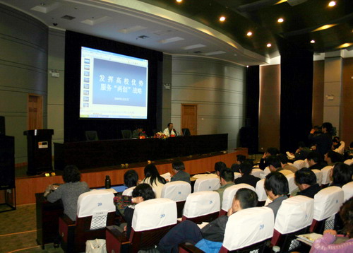 3月21日下午,学习贯彻十七大精神集中培训进行第三场辅导报告,杭州电子科技大学党委副书记金一斌作了题为“发挥高校优势,服务‘两创’战略”的报告。校党委副书记胡浙平主持报告会。