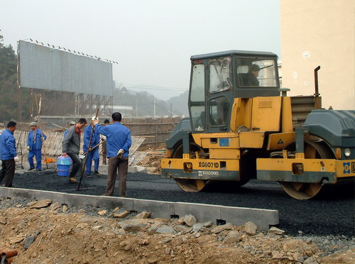 2月23日下午2时许,记者来到西和公寓一标段,看到工人们正在浇筑沥青路面。据基建处负责人介绍,一标段沥青路面明日即可完成。上午,副校长陈根芳来到施工现场,检查、协调工作。