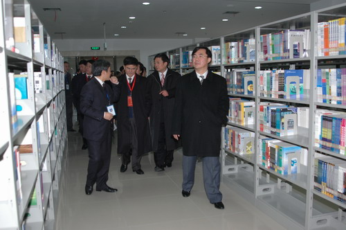 24日上午11时10分许,教育部评估专家小组成员在校党政领导班子成员陪同下,参观图书馆信息中心大楼。图书馆负责人在馆前对评估专家的到来表示热烈欢迎。