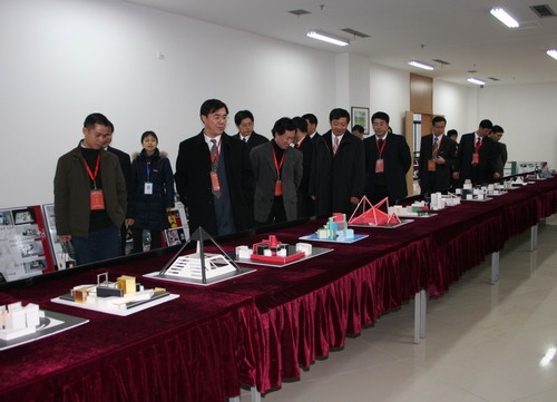 评估专家一行沿着旋转楼梯走上二楼。二楼艺术阅览室配置了国内大学图书馆不多见的彩色复印机。专家在彩色复印机前驻足观看。从书库出来,登上五楼,室内展台上陈列着建工学院学生优秀的作业作品。