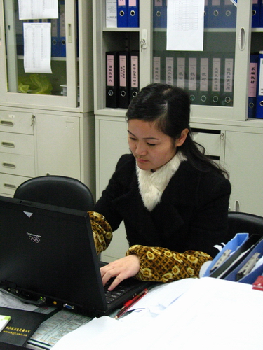 林丽老师是信息学院的教务员,常常看到她在办公室和走廊之间里跑来跑去忙活。林老师还是学院评建小组的联络员。她办公室旁边就是存放评估材料的房间,有老师来查阅整理材料,她就放下手头的工作,跟着过去开门,老师完工了她又跑过去关门,顺便看看有没有乱。平时,经常有老师打电话询问有关细节问题,她总是不厌其烦的做出解答。