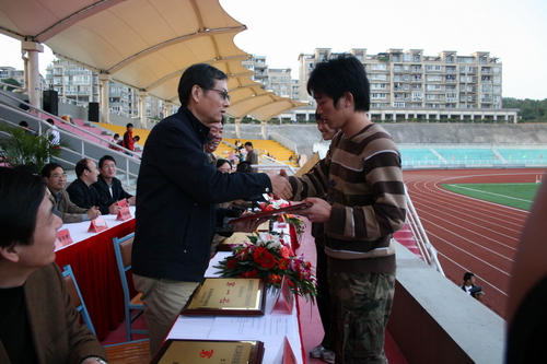 校党委副书记陈浩致闭幕词。他说,本次运动会是我校在成功战胜“罗莎”台风后、迎接教育部本科教学评估的关键时期召开的一次成功的体育盛会,广大师生充分体现了“更高、更快、更强”的奥运体育精神,展示了良好的体育运动水平和高尚的体育道德,体现了顽强拼搏、团结互助的精神风貌,也是学校全体师生在迎接本科教学评估冲刺阶段昂扬奋发、敢于胜利精神状态的充分体现。希望全校师生以本届运动会为新的起点,进一步推动我校全民健身运动和群众性体育活动的深入开展,增强师生员工积极参加体育锻炼、全面提高身体素质的自觉性,把本届运动会所展现的顽强拼搏、团结互助、敢于拼搏、奋勇争先的精神面貌带到下一步的评建工作当中去,进一步推动本科评建工作,进一步强化教学中心地位,增强以人为本、学生第一的理念,进一步落实科学发展观,创建和谐校园,为我校在12月份的本科教学评估中争创优良成绩,实现跨越式发展而努力奋斗!