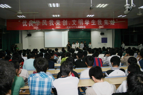 机制064班开展“今天我做班委”活动,鼓励每一位同学都参与到班级管理和建设中来,提高主人翁意识;材料061班创立晚自习“1+1+x”的互助模式,推选一位成绩优秀的同学带队负责整个小组的学习,由一位学习有困难的同学担任副组长来管理小组的纪律,组员们互相督促共同进步;机制054班结合同学们的兴趣爱好有层次、有重点的提出“以科技创新来推动学风建设”;机制051班针对抄袭作业的现象进行了“诚信作业”签名;部分班级充分利用网络结合学生的兴趣点建立了“同一个班级,同一个梦想”的班级论坛,增强班级凝聚力;还有一些班级提出了“电话接龙”、“快乐基金”等促学风的措施。一个个新颖独到的创意,激起了同学们的极大兴趣。