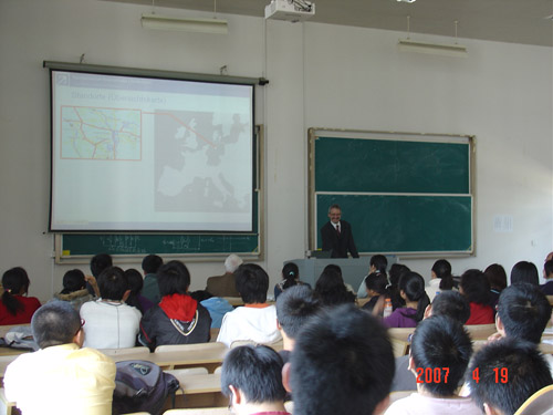 4月19日下午,来自德国不伦瑞克/沃芬比特尔应用科学大学、奥登堡/东弗里斯兰/威廉港应用科学大学、肯普腾应用科学大学的教授们为我校师生做了一场别开生面的报告会。本次报告会,也是我校“魅力德国——2007年德国文化节”系列活动之一。