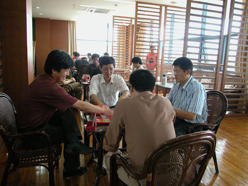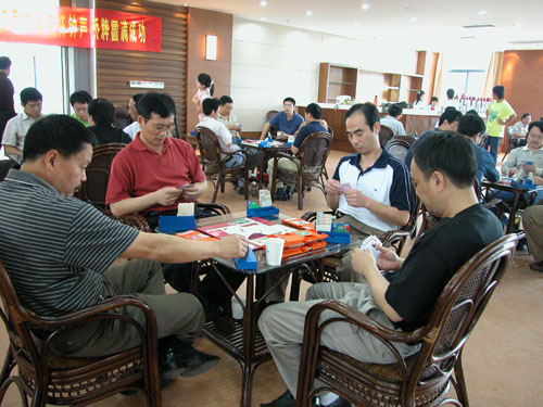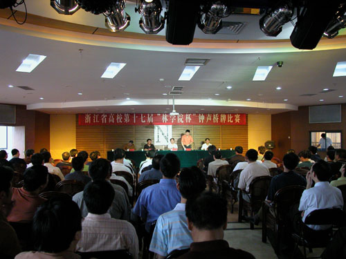 浙江省第十七届“林学院杯”钟声桥牌比赛于5月25日在美丽的浙江林学院东湖校区举行。全省高校共有30支代表队参加了这次比赛。我校由郑娄杰、祝邦文、李勇、王耀翔、陈钢进、邹凤楼等六位教师组成的代表队参加了比赛。经过三天的激烈争夺和艰苦拼搏,祝邦文、李勇两位老师获得双人赛南北组冠军;郑娄杰、王耀翔两位老师获得双人赛东西组亚军。在团体比赛中,我校代表队获得乙组团体第5名。