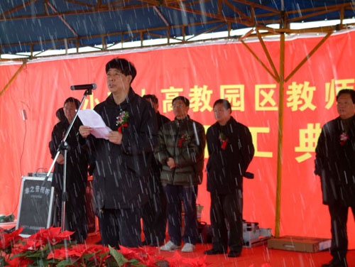 12月28日,小和山高教园区教师经济适用房开工典礼在施工现场隆重举行。浙江省教育厅厅长候靖方在开工仪式上讲话。他说,小和山高教园区教师经济适用房的开工是园区建设的一件大喜事,是政府献给教师们的一份新年贺礼。按照省政府规划,小和山高教园区完全建成后在校生规模将达5万人,在园区工作的教师将达1万名。高教园区要取得更大发展,提升层次,关键在人才和教师。高教园区经济适用房的开工将对改善园区教师住房条件,吸引人才到园区工作起到促进作用。