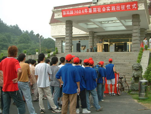 7月2日,2004年浙江科技学院暑期社会实践活动启动仪式在小和山校区宾馆广场前隆重举行。校党委副书记胡浙平向即将启程的大学生们致热情洋溢的开幕辞,并为实践小分队授旗。开幕式由校团委书记王静主持。