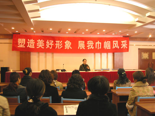 3月4日下午,在小和山校区大会议室里,近百位清一色的女同胞正聚精会神地“听课”。原来,院工会女职委为迎接国际“三八”妇女节而安排的系列活动之一 —— “高校女教师形象设计”讲座正在这里举行。近几年来,随着学校各项事业迅速发展,办学规模、办学层次、办学特色和办学效益不断提高和增强,学校的知名度和影响力迅速扩大……,女教职工在教学、科研、管理、服务等岗位上正发挥着越来越重要的作用,她们是学校发展中名副其实的“半边天”。然而,工作辛苦,家务劳累又是多数女教职工生活的真实写照。为了帮助姐妹们更好的关爱自己——“塑造美好形象,展我巾帼风采”,院工会女职委特邀请杭州市政协委员、中国美容大师、历届国家级评委、全国技术能手、浙江花都美容美发培训中心校长罗红英女士为我校女教职工开办了“塑造美好形象,展我巾帼风采”的专题讲座。罗老师主要讲了皮肤的保养、化妆、发型、着装等四个方面内容。讲台上,罗老师慢声细语,娓娓道来,既有深入浅出的理论,又有实际操作示范,还穿插有问题解答。台下,大家听得聚精会神,尤其是罗老师的现场示范更是吸引了众姐妹的眼球……。时间很快过去,原定两小时的内容不得不又延长了半小时才结束。罗老师的讲座,受到了女教职工的热烈欢迎。 (院工会)