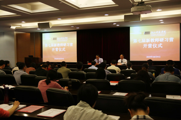 10月9日,校第七届新教师研习营开营,校长叶高翔、副校长冯军出席。相关职能部门负责人,相关二级学院教师发展工作负责人、联系人、人事秘书,2018年以来新引进教师和部分青年教师助讲培养教学导师等80余人参加。