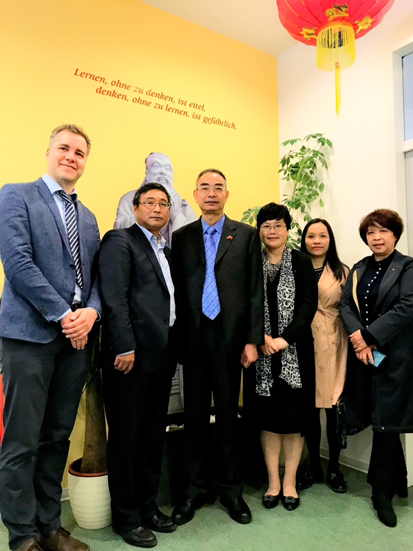 在德国访问期间,龚建立代表学校邀请德方高校参加明年9月在杭州举行的第七届中德论坛大会。在埃尔福特应用科学大学,代表团与校长Zerbe教授进行了会谈,就目前两校的各类合作项目和两校合作的未来发展等方面进行深入探讨。龚建立一行还考察埃尔福特孔子学院,了解孔院运行情况。在汉诺威应用科学大学,龚建立与副校长Heüveldop共话两校长久的合作历史和丰硕的合作成果,就继续深化两校的合作进行商谈。代表团一行与德方相关负责人出席我校首个海外校友会——德国校友会成立仪式。代表团出席西海岸应用科学大学25周年校庆活动。龚建立对两校前期合作予以高度肯定,并畅想两校未来发展的美好前景。代表团就中德工程师学院的运行和发展战略等问题与德方进行了充分协商。龚建立一行还看望我校在该校的交换学生,了解他们在德期间的学习和生活情况。