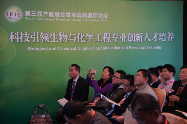 5月14日上午,由国家教育部、河南省人民政府支持,教育部学校规划建设发展中心、应用技术大学(学院)联盟主办,驻马店市人民政府承办的第三届产教融合发展战略国际论坛在驻马店开幕。除主论坛外还举办六场专题分论坛,以实际行动助力地方本科高校转型发展,推进产教深度融合。来自政府机构、省级教育行政部门、国际组织、行业企业、协会商会、应用技术大学(学院)联盟成员高校、地方本科高校、职业教育集团和国外应用型高校等方面的代表共计600余人参会。本次国际论坛第三分论坛“科技引领生物与化学工程专业创新人才培养”由我校承办,在学校和规划处领导支持下,生化轻工学院、省2011协同创新中心、省重点实验室、省一流学科等承担分论坛的组织实施工作。来自全国50多位高校代表、企事业单位代表、行业领导等参加了第三分论坛,我校校长叶高翔教授、副校长郑友取教授、规划处李志华处长、生化轻工学院刘士旺院长、范伟刚书记、王永江副院长和办公室赖红武主任参加了论坛报告会。本次分论坛报告分二个阶段,第一阶段由校长叶高翔教授主持,第二阶段由副校长郑友取教授主持。