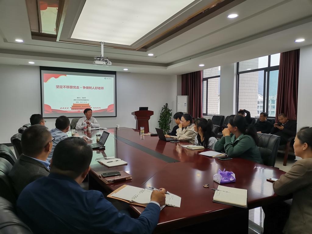 10月19日,环资学院举行党史学习教育“听老党员讲党课”专题报告会,邀请浙江科技学院党委原副书记胡浙平为学院全体教职工上党课。