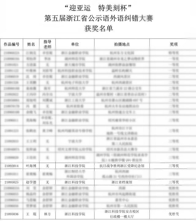 本次比赛由杭州市翻译协会和杭州市中华职业教育社国际交流工作委员会主办,比赛于6月开启,该赛事旨在促进高校师生及社会各界对浙江省公示语规范问题的关注,为杭州市以及浙江省内各地区公共场所的标识与路牌等翻译提供建设性意见。(外国语学院 单兴苗)