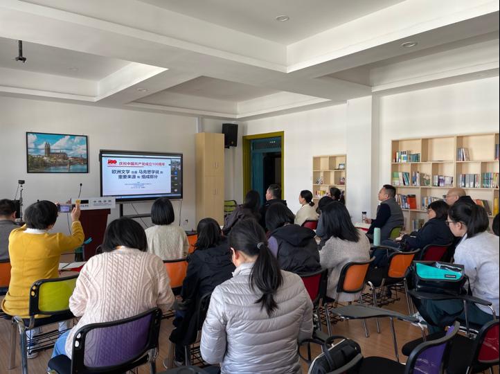 他讲解了专业德语课程中如何引导学生理解《共产党宣言》中的语言风格、诗学特征、修辞手段;运用不同的翻译学理论,尝试各种翻译的可能性,在学习专业知识的同时,提高学生的语文鉴赏能力、哲学思考能力、政治辨识能力;深明马克思主义的初心使命:为人民服务。