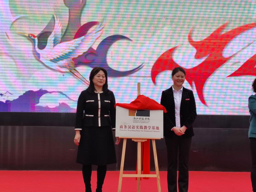 11月17日,人文学院院长叶晗与浙江商业职业技术学院国际交流学院院长黄益琴共同为“浙江科技学院商务汉语实践教学基地”揭牌,代表着我校将在汉语国际教育领域与该校进行更深层次的交流与合作。