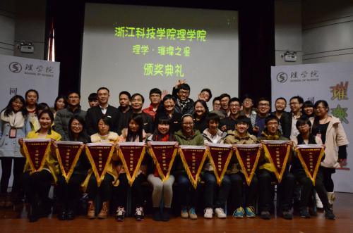 会上,陶祥兴发表了热情洋溢地致辞。他首先对获奖个人和集体表示热烈的祝贺,并强调学院会始终将教书育人放在首要位置,致力于培养厚基础、强应用、高素质,具有国际视野的优秀人才,不断给予理学学子众多政策支持和精神鼓励。 在现场响起的热烈掌声和欢呼声中,主持人上台宣读了2014年 “理学·璀璨之星”十人获奖名单:周婷婷、王凯宇、黄立媛、赵梦倩、张晟畅、陈冠维、张东,理学院12届优秀创业校友、辣妈汇电子商务有限公司总经理刘晖、理学院10届优秀校友、浙江工业大学理学院教师卢忠以及来自Burundi的留学生Any Arlene Niyubahwe。他们或学习卓越、事业有成,或热心志愿、才华横溢,正是他们,用感动的火光照耀今日,温暖了理学师生,如同一颗颗璀璨之星,闪烁星空。精彩的访谈与硕硕箴言让我们见证了追梦人难忘的寻梦之旅。十佳示范寝室为大家展示了各具特色的寝室和寝室主人的风采,也让现场众多学子感概不已,宿舍也可以打理的如此漂亮、整洁。十佳中小和山的“老生们”风采依旧,彰显个性;安吉的新生们也新颖夺目,活力四射。希望更多的同学开展寝室文化建设,打造良好的寝室学习、生活氛围。