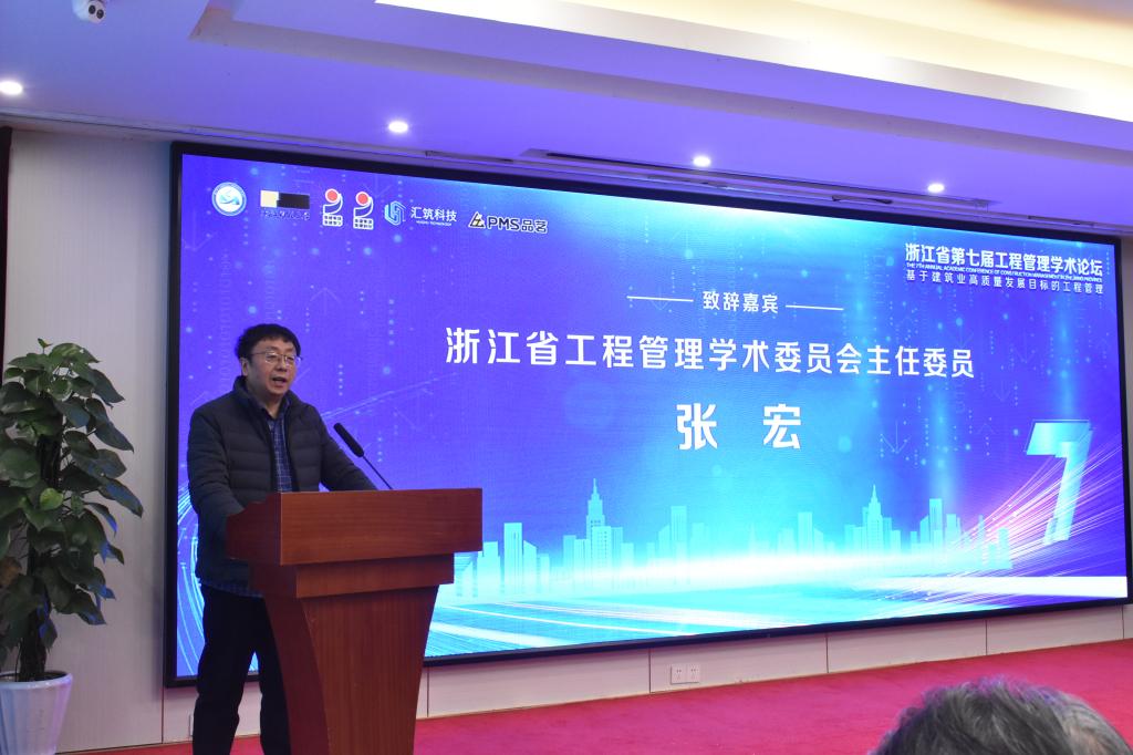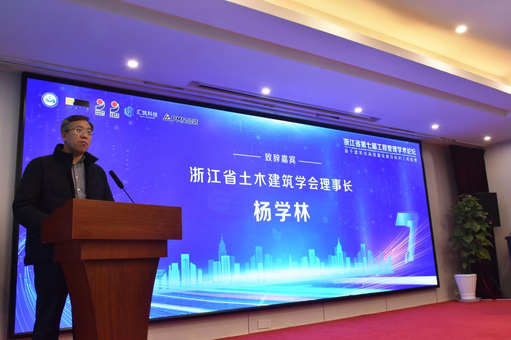 浙江省土木建筑学会、我校建工学院、浙江建投数字技术有限公司、浙江省工程管理学术委员会相关负责人致辞。他们指出,随着经济与科技的发展,抓住建筑行业数智化和绿色化转型机遇势在必行,希望通过本次论坛,进一步推动浙江省工程管理领域的创新和发展。
