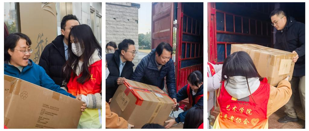 1月4日,艺术设计与服装学院牵线杭州普民服饰有限公司、浙江富立针织科技有限公司,向新疆理工学院以及阿克苏地区捐赠的四千多件冬衣和一万双冬袜发车。预计五天后,这批承载着爱意与善心的冬衣冬袜将运抵新疆阿克苏,为当地的学生和群众送去温暖和关爱。