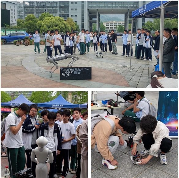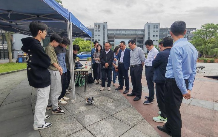 动作灵敏外骨骼机器人、适用于复杂环境中执行各种任务的物流机器人、精确执行任务指令的绘图机器人、“四足”支撑踏步向前的机器狗、能灵活绕过路障的智能小车……当天,在和山广场展出的学生科技作品吸引了师生驻足观看。