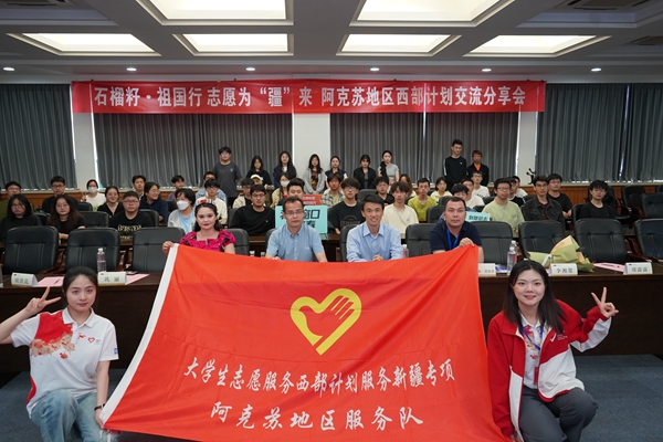 5月14日,西部计划新疆阿克苏地区专场交流分享会在我校举行。新疆阿克苏地区团地委相关负责同志、西部计划志愿者和我校师生代表参加本次活动。